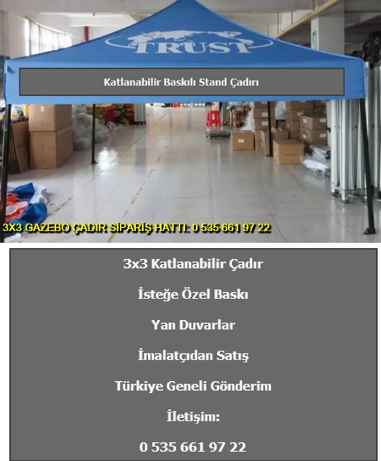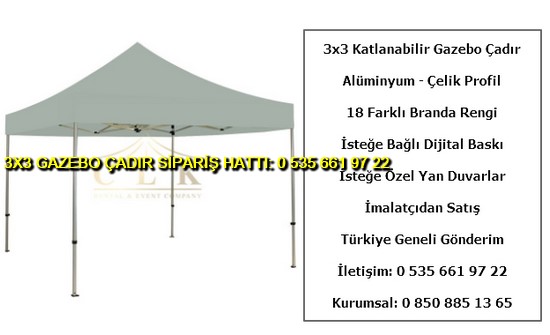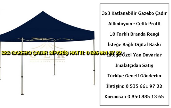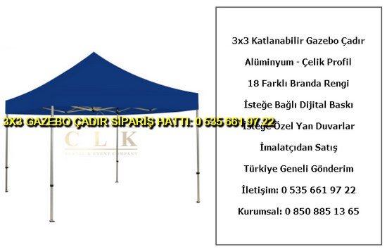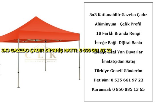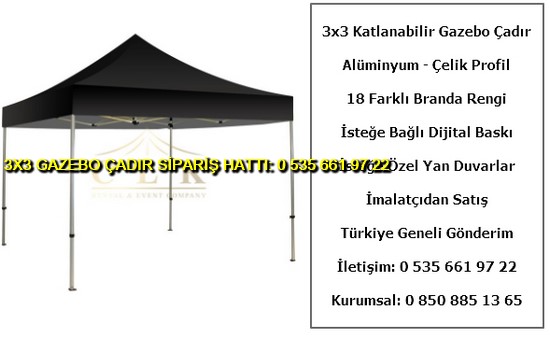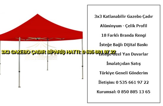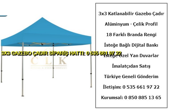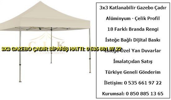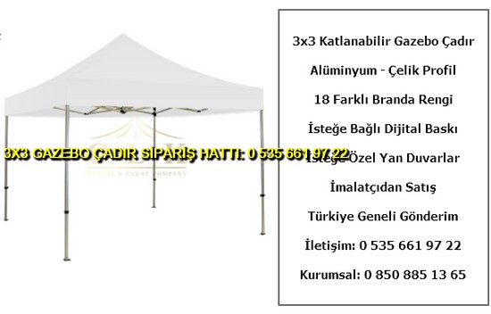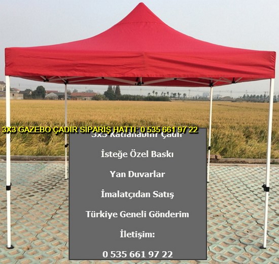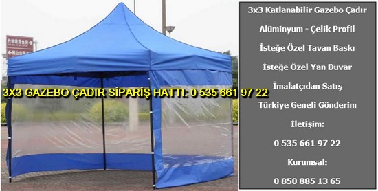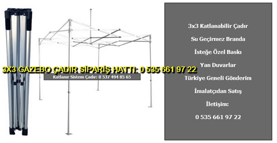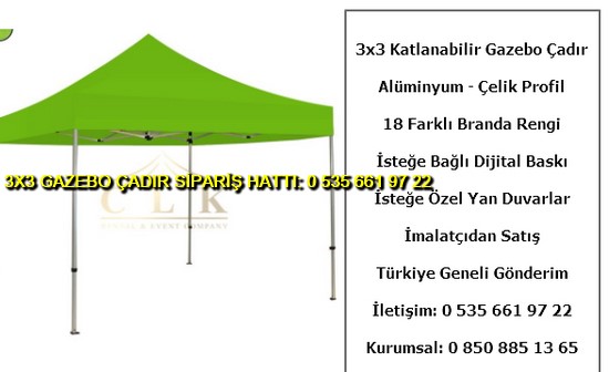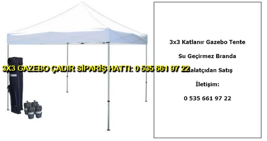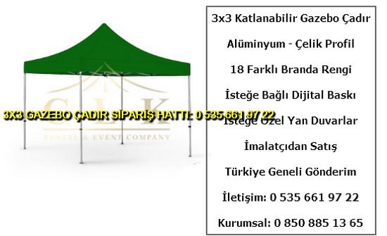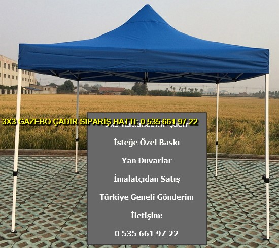 3×3 metre gazebo tente katlanabilir çadır satışı yapan web sitemize hoş geldiniz. Türkiye geneli katlanır gazebo çadır ve tente imalatı ve satışı yapan tek firmayız. İster logo baskılı gazebo çadır ve tente isterseniz baskısız katlanabilir 3×3 metre ölçülerinde çadır siparişi en uygun ucuz fiyatlar ile satın almak için 0 535 662 01 06 numaralı telefon ile bize ulaşın.