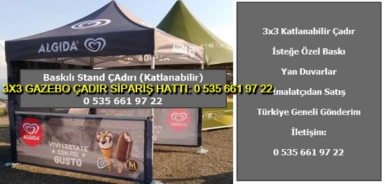 Saçak logo ve slogan baskısı 18 farklı renk seçeneği ile kullanılan dijital baskılı gazebo çadırınız tavan komple baskılı isterseniz sınırsız renk seçeneği ile baskı imkanı sağlıyoruz. 3×3 metre dijital baskılı katlanabilir gazebo tanıtım promosyon çadırı görselleri aşağıda paylaşılmıştır.