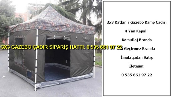 3×3 metre gazebo kamp çadırı stoklarımızdadır. Kamp çadırı, deprem çadırı, acil müdahale çadırı, pandemi tıbbi çadırı olarak kullanılabilen ve hızlı kurulan 3×3 metre gazebo katlanabilir çadır siparişi vermek için bize ulaşın. Kamp çadırı ve otomatik portatif kamp çadırı imalatı yapan tek firmayız.